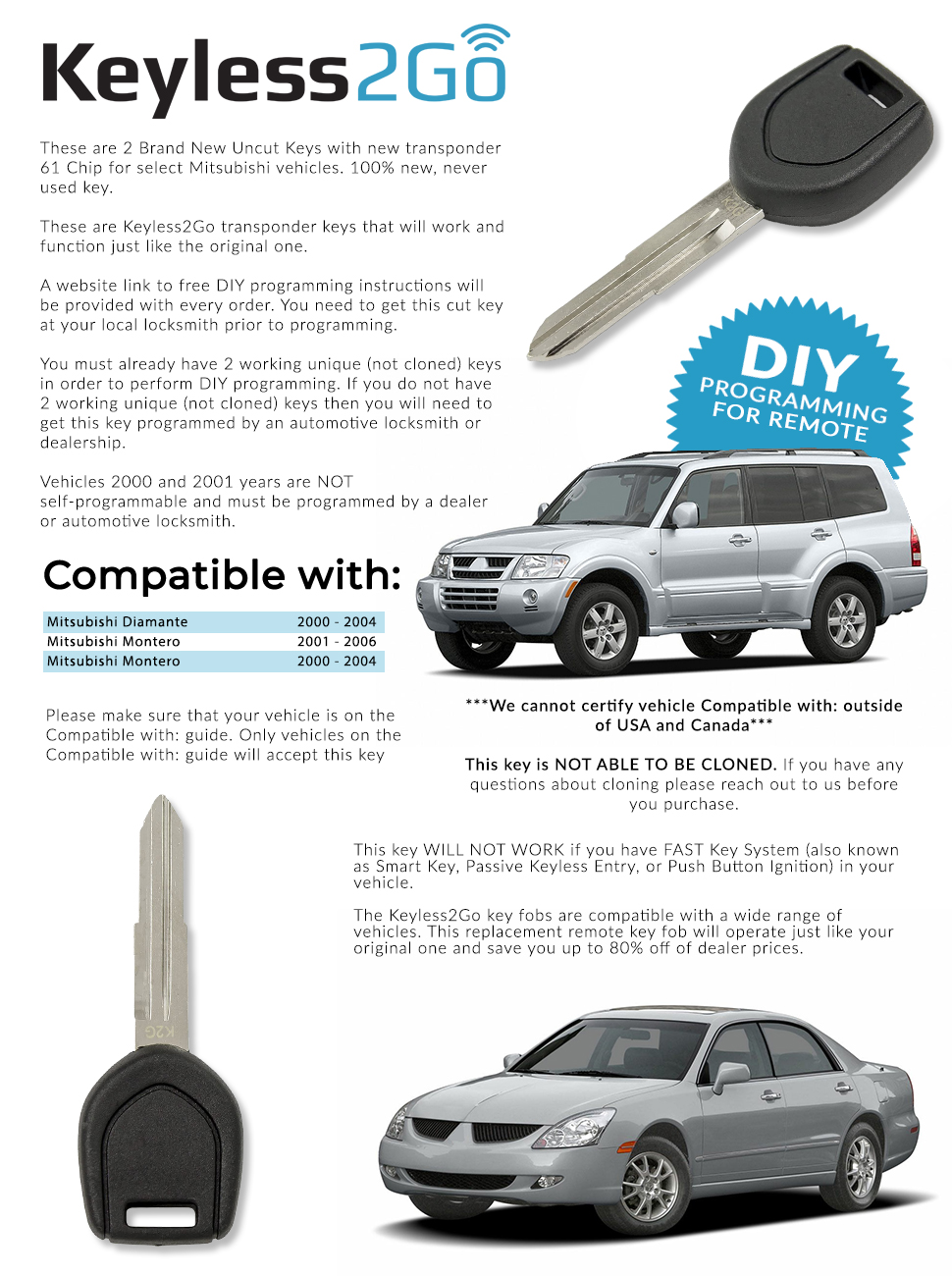 Amazon Com Keyless2go Replacement For New Uncut Transponder Ignition Car Key Mit12 Pt 2 Pack Automotive